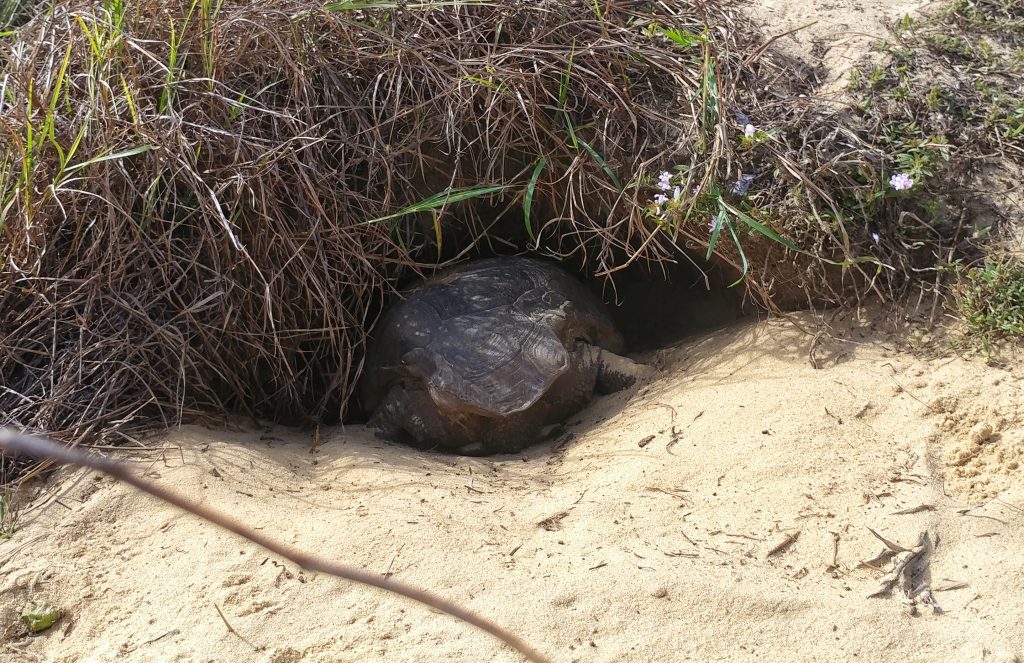 While I was orchidless and also didn’t see any alligators, I did see birds of all kinds, a few gopher tortoises, a turtle, and a looooooooong (like 5-6 feet) snake! The snake moved too fast for me to get a good picture, but I think it might have been an Eastern Coachwhip?? Remind me to tell you one day about the big 8-10 footer that sent me cart-wheeling over my handlebars a few months ago….