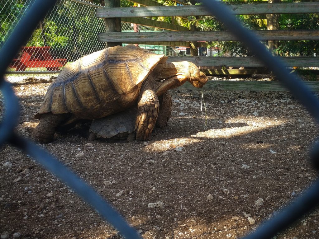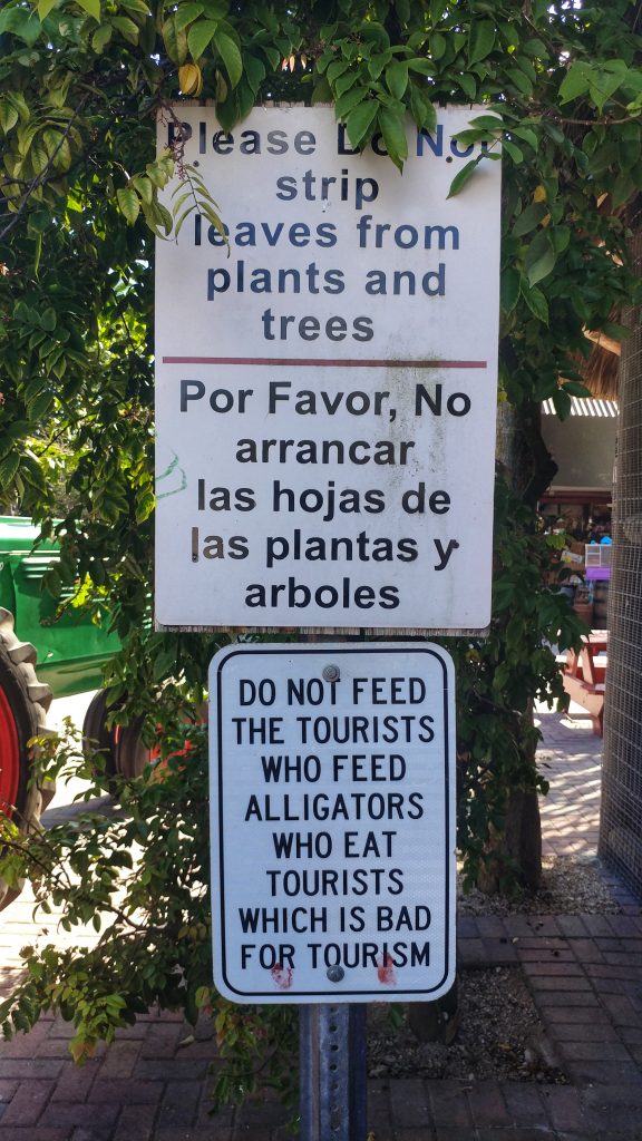 On Friday, I woke up before Jeff by a couple of hours. We got ourselves moving before too late and had hotel breakfast with waffles and sausage. The newspaper that day featured a story about the family farm Robert Is Here winning a local Farmer’s Bureau award. Check out the link for the sweet backstory. Jeff and I were already planning to go to the Everglades National Park this morning and decided to stop at the farm stand on the way in. It looks like what I picture my parents would have if they retired to Miami area instead of Northern Michigan. There were stacks of fresh tropical fruit, jams and honey, and juices. Our favorite part was behind the shop where there were animals of all sorts – a weird menagerie of farm animals and tropical exotics. We left with half a guanabana and a couple of popsicles.