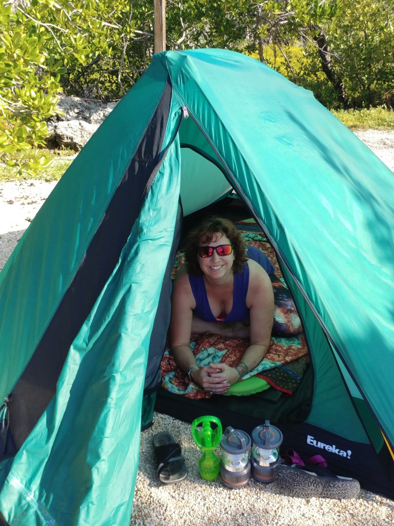 We settled into the tent to watch a tv show on our tablet and sleep. Falling asleep was easy but staying asleep was a struggle! Even though we had the flaps open to let air flow through the mesh, there was almost no breeze and it was hot hot HOT!! It must have been over 90 degrees in the tent and both of us woke up feeling anxious and suffocating like we were going to have heat stroke. After a restless night with little sleep, we agreed to find a place in Key West for the night instead of cooking ourselves another night. So camping failure #3! At least he likes the rest of the experience and was even comfortable on the bedrolls, so that’s a plus. He is giving me a do-over on this one so I will choose more wisely next time. We’ll get a good camping experience for him someday!