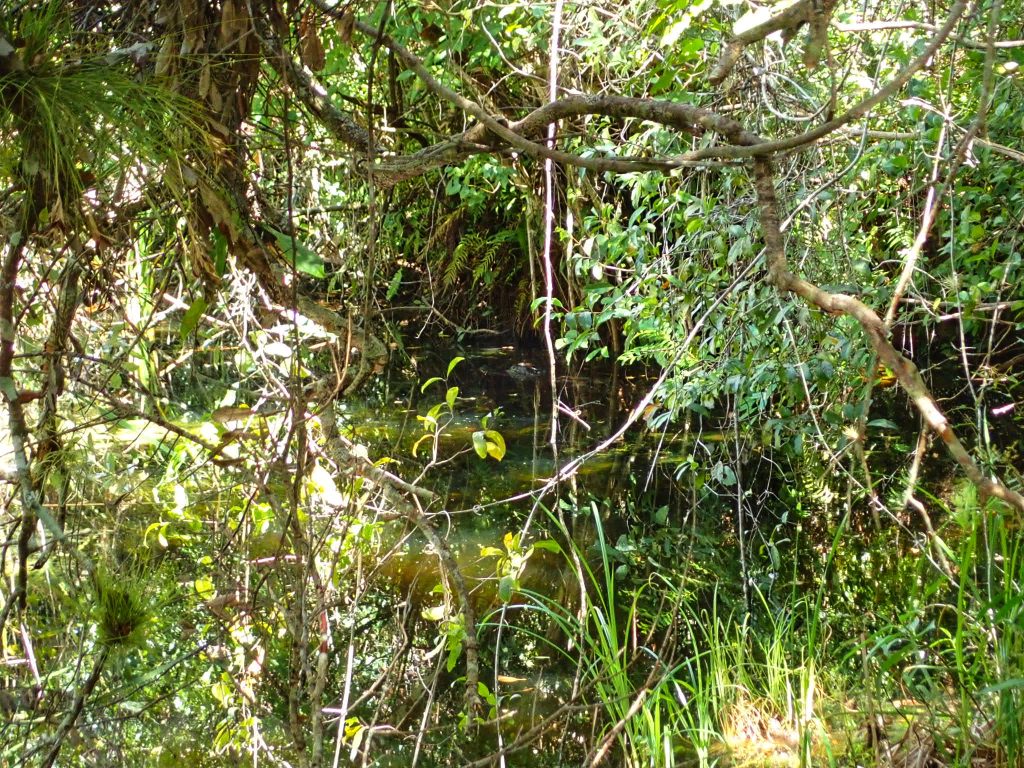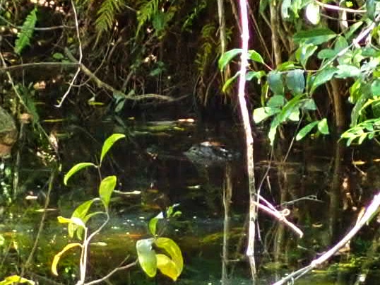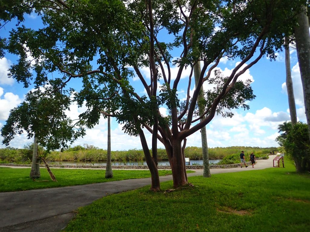 After a short loop, we ducked into the Gumbo Limbo trail which was pleasantly shady and cool. We were looking out over a shady stretch of water and we suddenly heard a growling bellow. A big gator was a few feet away and sending rippling waves through the water from his roaring growl. We were happy that we were high enough out of the water to be out of easy reach, because he was a big guy!